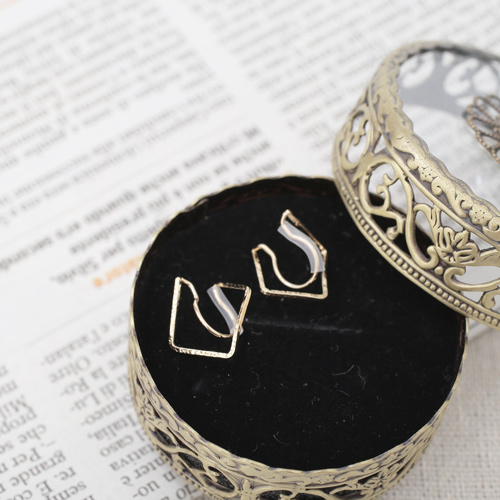 モダンで不思議なイヤリングは見る人をくぎづけにすること間違いなしです。