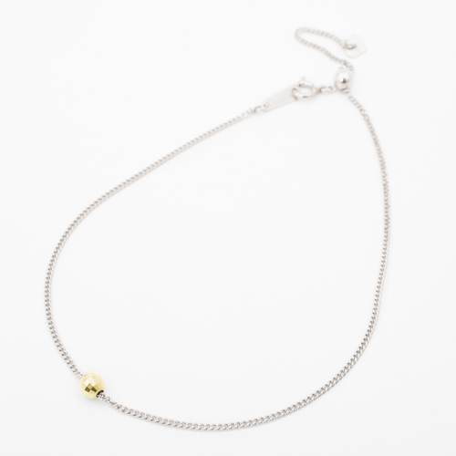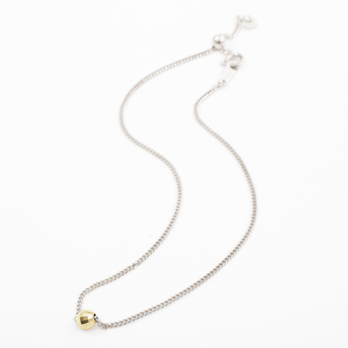 ブレスレットのセンター部分には、ワンポイントの18金ミラクルカットのミラーボールがキラリと輝き、エンド部分には可愛いハートのチャームが付いたコンビ仕様です。長さ約23cmは一般的にアンクレットとしてもお使いいただけるサイズですので是非お試し下さい。