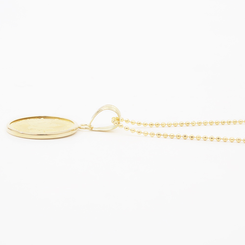 18金のシンプルフセコミ枠を巻き、イタリア製チェーンをセットしたコインペンダント。