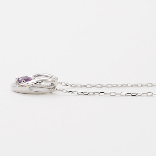 K10WGバテイタイプの誕生石ペンダント。小さくてかわいい馬蹄デザインのペンダントが登場しました。心を穏やかにし、大切な人との絆を深める宝石、2月の誕生石であるアメジストをバテイの中心に配置した、華奢だけれども主張し過ぎない安心の存在感です。そのままシンプルにお使い頂いても、別のチェーンやペンダントと合わせて重ね着けしてもOK! どんなスタイルにも合わせやすいので、普段づかいのジュエリーとしても大活躍すること間違い無しです。 流行や年齢に関係なく、きっと長く大事にお使い頂けます。ハイセンスなプレゼント包装も無料で対応しておりますので、大切な方への贈り物にもおすすめです。