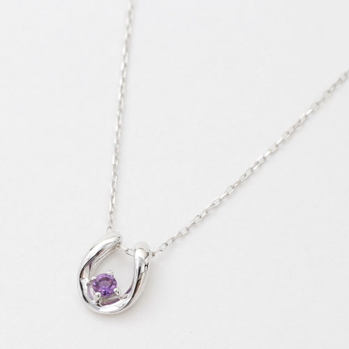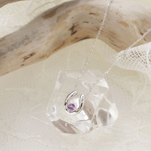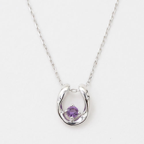 10金 K10WG ホワイトゴールド ネックレス ペンダント 馬蹄 天然石 アメジスト 2月 誕生石 4185-HG20