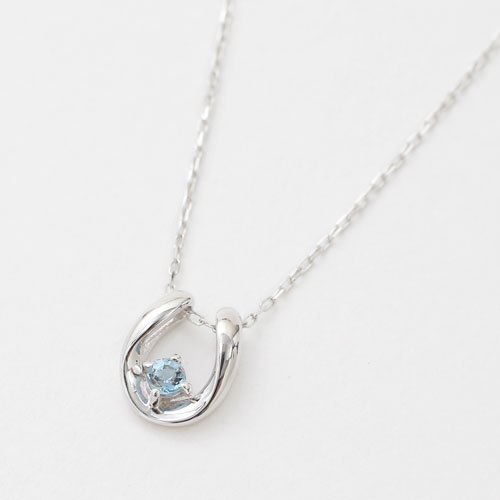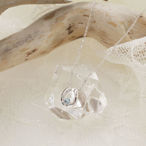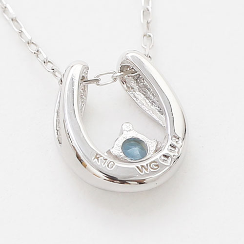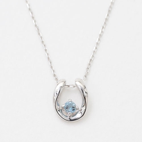 10金 K10WG ホワイトゴールド ネックレス ペンダント 馬蹄 天然石 アクアマリン 3月 誕生石 4186-HG20