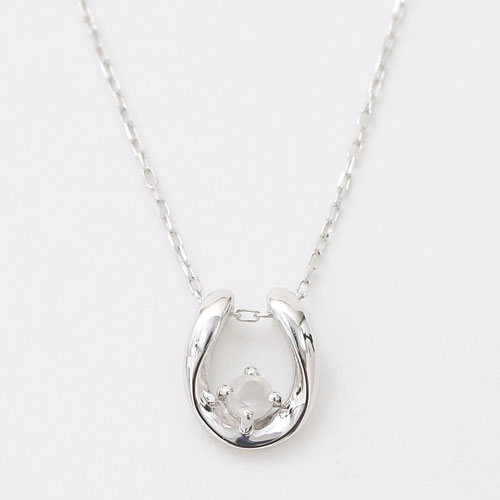 10金 K10WG ホワイトゴールド ネックレス ペンダント 馬蹄 天然石 ムーンストーン 6月 誕生石 4187-HG20