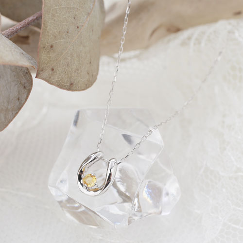 10金 K10WG ホワイトゴールド ネックレス ペンダント 馬蹄 天然石 トパーズ 11月 誕生石 4192-HG20