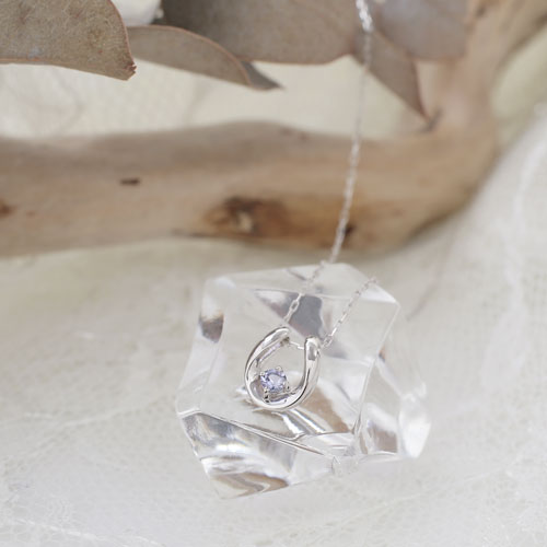 10金 K10WG ホワイトゴールド ネックレス ペンダント 馬蹄 天然石 タンザナイト 12月 誕生石 4193-HG20