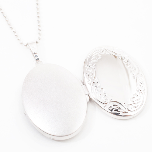 クラシカル模様の定番ロケットペンダント。シックなデザイン、裏は無地の艶消し仕上げの為、その日の気分で両面を使い分けていただけます。合わせる洋服によってキュートな感じにもシックでクラシカルな雰囲気にもなります。彫刻柄も本当に細かくて高級感があります。大切な人、大好きなペットなどの写真をこっそり入れて、お洒落にロケットペンダントを楽しんでください。