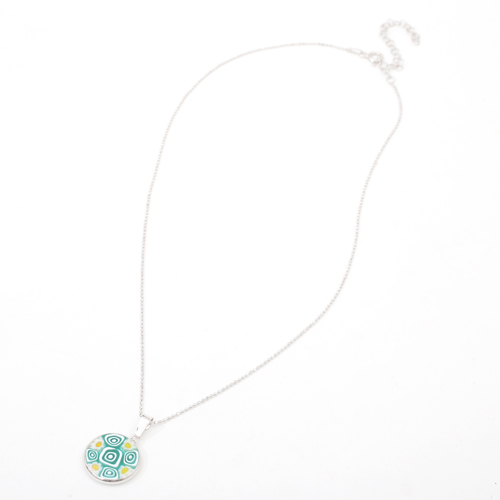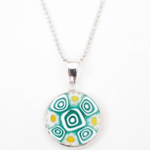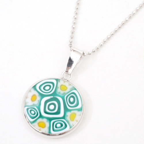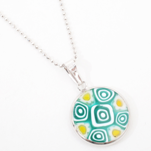 イタリア製 ベネチアンガラス ミレフィオリ ペンダント うずまき カットボールチェーン付 4275-GO20
