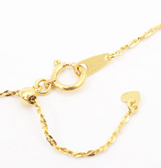 45cmまでのお好みの長さに調整できるシリコンスライドボールが付属した、ジャスト・マイ・サイズが可能な仕様です。重ね着け用のチェーンとしてもお勧めのアイテムです。プレート部分には、「K24(刻印)」が有り、確かな品質も証明されています。