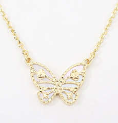 イタリア3大貴金属ジュエリー生産地の一つ、ヴェニスより西に約1時間のヴィチェンツァにある大手工場の商品。世界中に輸出をするイタリアンジュエリーは繊細で洗練されたデザインが特徴です。【どんな服装にも合わせやすい色合いのイエローゴールドペンダント】 蝶シェイプに白蝶貝。ホワイトとピンク色のリバーシブル仕様。チェーンは人気の変形アズキをセットしています。