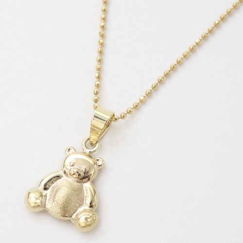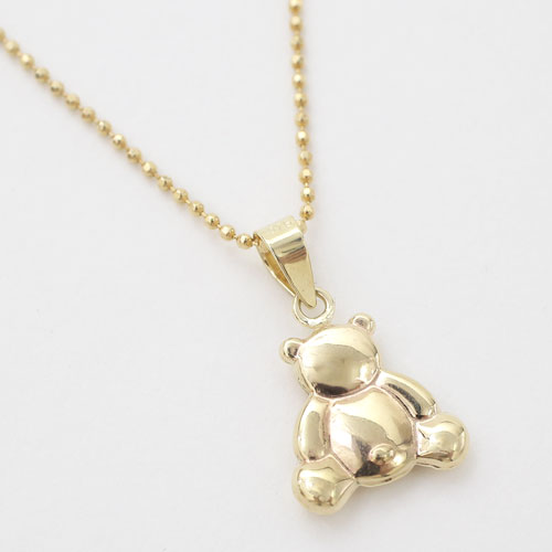 ベアー(クマ)ペンダントはモチーフものとしても人気があり、胸元をユニークに演出します。チェーンは人気のSVカットボールをサービスでお付けしております。(トップとのゴールド色が若干異なります。気になるようでしたら、別売りのK18チェーンなどををお選びください。)