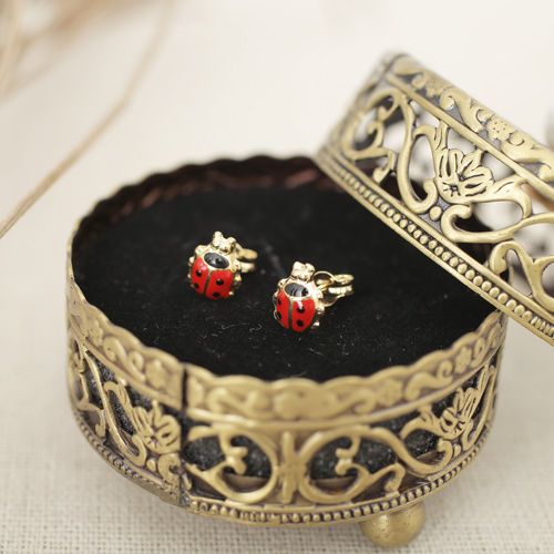 18金を贅沢に使用したスペイン製のてんとう虫ピアス。ユニークで遊び心があり、鮮やかな赤色を使用しておりますが、ハードになり過ぎず、コーディネートにさりげない個性を与えてくれます。