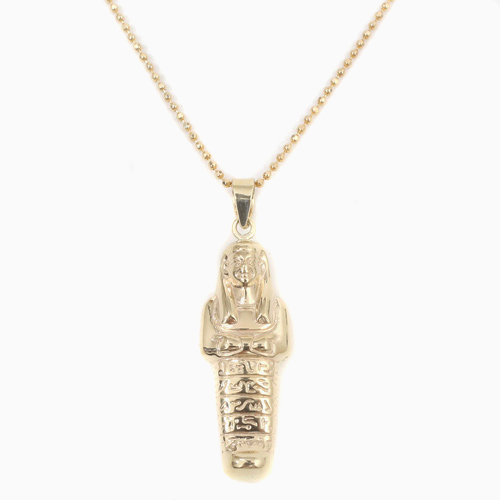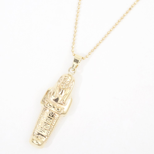 ミイラ(マミー)モチーフのペンダントはお守りとしても人気があり、胸元をユニークに演出します。チェーンは人気のSVカットボールをサービスでお付けしております。(トップとのゴールド色が若干異なります。気になるようでしたら、別売りのK18チェーンなどををお選びください。)