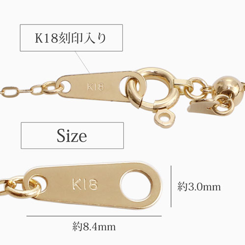 しかも、18金 純度75%の素材はアレルギーも起こしにくく胸元に魅力的な輝きを醸し出してくれます。ちょうど良いサイズですので存在感が高く胸元に華を添えるお洒落の広がるアクセサリーとして注目です。また、チェーンには45cmまでのお好みの長さに調整できるスライドチェーンを付属していますので使い勝手の良い仕様となっています。