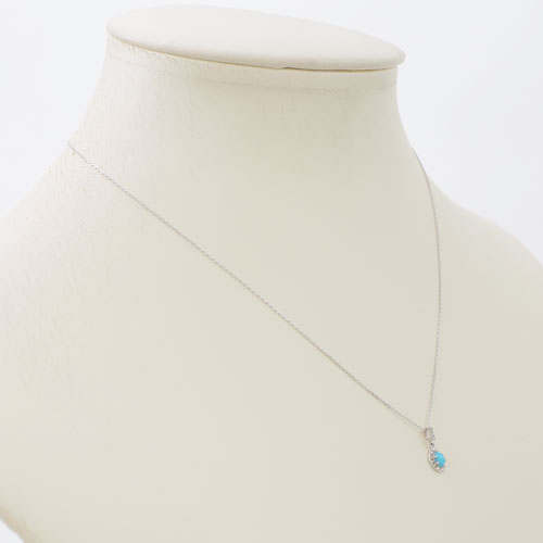 18金ホワイトゴールド トルコ石 華奢 ペンダント アズキチェーン 4332-UK20