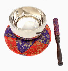豪華セット銀製おりんにぴったりの上品な鈴台と鈴棒付きです。 |