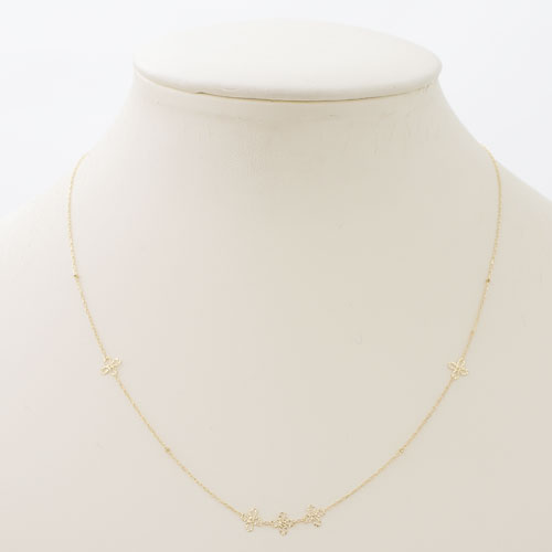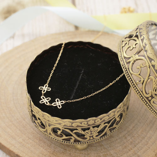 高級素材である、18金(K18)を使用した、細く繊細で可憐なネックレス。華やか過ぎない、洗練されたデザインのネックレスは、可愛い大人の女性にぴったりです。普段の装いをぐっとエレガントに引き立ててくれます。