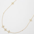 高級素材である、18金(K18)を使用した、細く繊細で可憐なネックレス。華やか過ぎない、洗練されたデザインのネックレスは、可愛い大人の女性にぴったりです。普段の装いをぐっとエレガントに引き立ててくれます。まるで雪の結晶のようなカットを施したクロスモチーフパーツが、揺れるたびに胸元に可愛いきらめきを演出してくれます。また、シリコンボール仕様ですので、45cmまでのお好みの長さにワンタッチで調整でき、重ね着けコーディネートにおススメのアイテムです。これからのプレゼントの季節にぴったりのお勧めキューティーネックレスです。