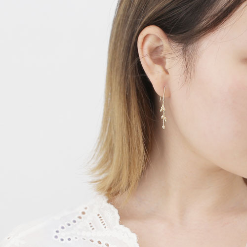 キラキラと繊細で可憐に輝くゴールドが大人の魅力を演出します。フック部分には「K18」の刻印が入っています。
