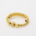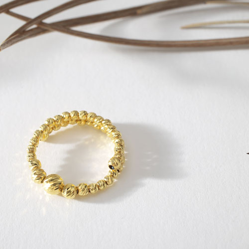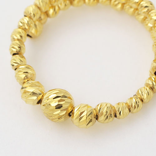 大手国内メーカー生産の美しいウェーブカットを施したボールをセンターに配したミラクルカットリングです。中芯にフレキシブルなチタンワイヤーを入れたフリーサイズ仕様です。サイズ#5から#15あたりまで対応しているのでお好みの指にその日の気分で着けてください。(写真は小さめサイズで大きくなると形状は変化します。)キラキラと繊細で可憐に輝くゴールドが大人の魅力を演出します。上品で繊細なデザインと存在感が魅力の最新純金フリーサイズリングが大変お買い得です。