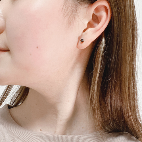 合計(片耳0.3ct)のサイズ感は、適度にボリュームがあり、ピアスにすると派手すぎず、ちょうどバランスがいい感じです。