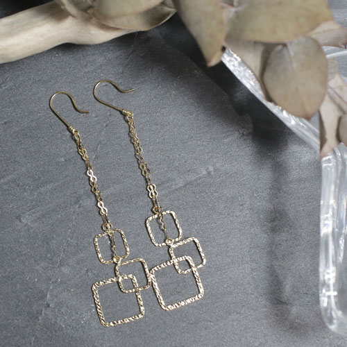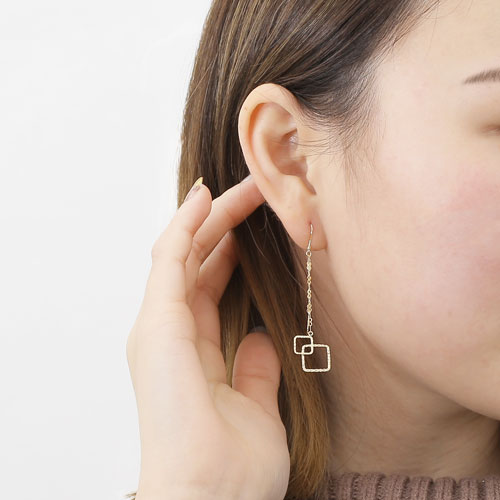 18金 ハンマリングカット スクエア ピアス 4418-JU20