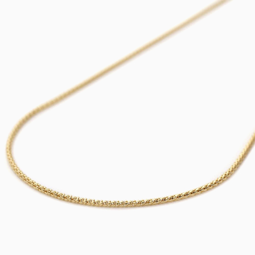 高級素材・18金を贅沢に使用した、シンプルで細く繊細なスライド式の人気のボンバータチェーンネックレス。しかも、高い技術力と高品質の日本の工場で生産。程よい太さとしっかりとしなやかにな形状はまさに Made in Japan です。日本で「作れる工場も限られており、なかなか見つけることのできない逸品です。