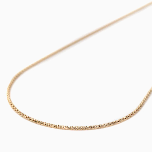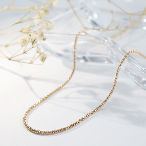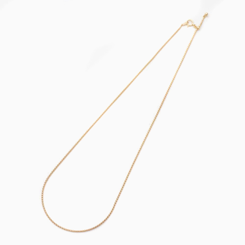 高級素材・18金を贅沢に使用した、シンプルで細く繊細なスライド式の人気のボンバータチェーンネックレス。しかも、高い技術力と高品質の日本の工場で生産。程よい太さとしっかりとしなやかにな形状はまさに Made in Japan です。日本で「作れる工場も限られており、なかなか見つけることのできない逸品です。