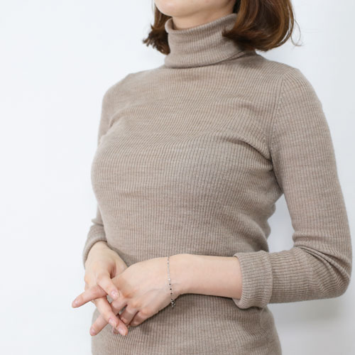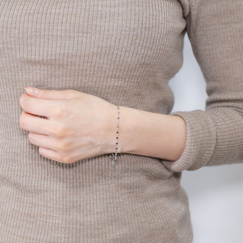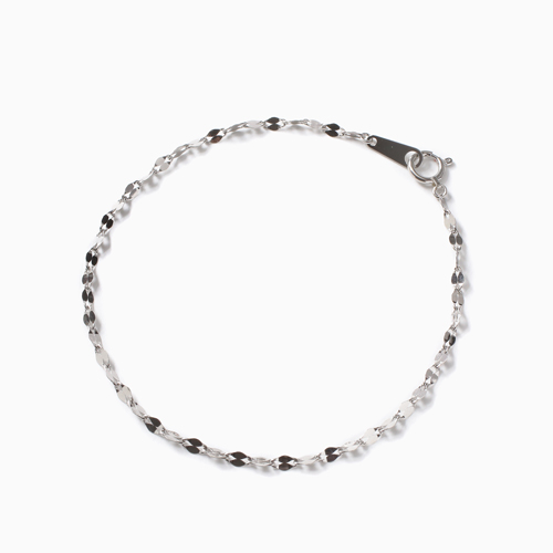 ペダルチェーンの縦と横の交互が織り成すランダムな輝きが手首に華やかで豪華な印象を作ります。高級素材・Pt850のみでお作りしたペダルをモチーフにしたデザインは、どんなスタイルにも合わせやすく、普段の装いをぐっとエレガントに引き立ててくれます。