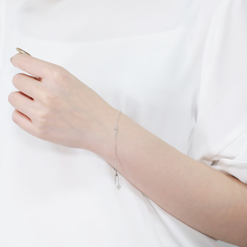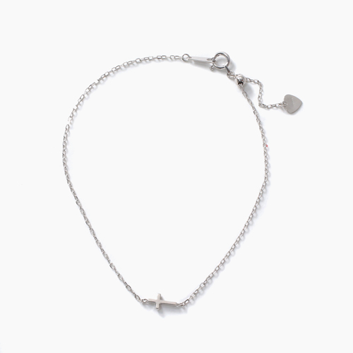 日本製 10金ホワイトゴールド タイニークロス ブレスレット スライドアジャスター付き 4485-UK21