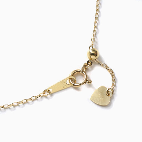 アズキチェーンの縦と横の交互が織り成すランダムな輝きが手首に華やかで豪華な印象を作ります。高級素材・10金のみでお作りしたオープンハートをモチーフにしたデザインは、どんなスタイルにも合わせやすく、普段の装いをぐっとエレガントに引き立ててくれます。
