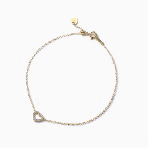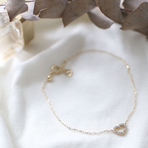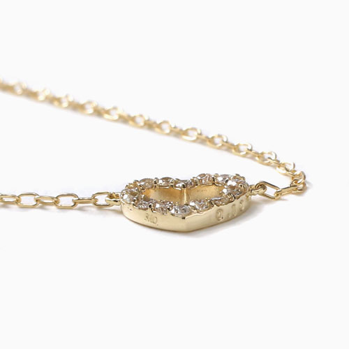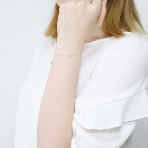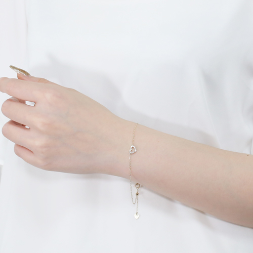 日本製 10金 ハート ブレスレット ダイヤモンド 合計約0.1カラット 4486-UK21