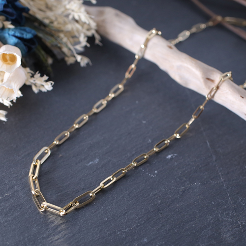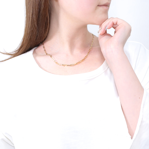 18金 ペーパークリップ スクエアカット アズキ ネックレス 45cm 4550-MS21