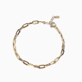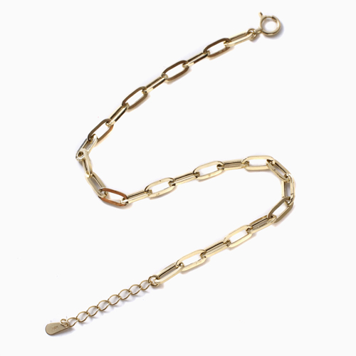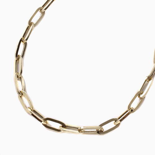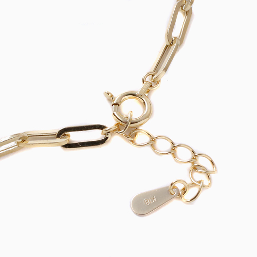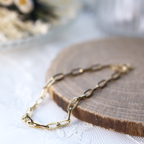高級素材である、18金(K18)を惜しみなく使用した、有名ブランドC社が火をつけた世界的に人気のデザイン。繊細でシンプルなのに気品あふれるブレスレット。イタリアならではの洗練されたデザインのペーパークリップは、落ち着いた大人の女性にぴったりです。普段の装いをぐっとエレガントに引き立ててくれます。18cmに2cmのアジャスターを付けましたので、手首に多少のゆとりを持たせました。プレート部分には、「K18(刻印)」が有り、素材と品質の良さも証明されています。日本製にはない細長いフラットなアズキタイプチェーンを組合わせたデザインはたくさんの輝く面を作り胸元を豪華に演出。