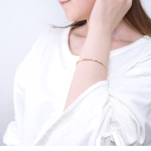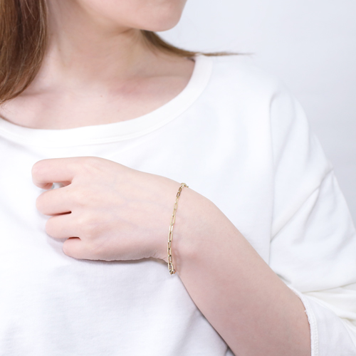 高級素材である、18金(K18)を惜しみなく使用した、有名ブランドC社が火をつけた世界的に人気のデザイン。繊細でシンプルなのに気品あふれるブレスレット。イタリアならではの洗練されたデザインのペーパークリップは、落ち着いた大人の女性にぴったりです。普段の装いをぐっとエレガントに引き立ててくれます。