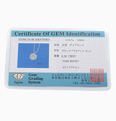 | 素材 | ・トップ(プラチナ999/1000) ・チェーン(プラチナ850/1000) ・ダイヤモンド1個(0.5ct.)I1クラス、Iカラー(証明カード付) |