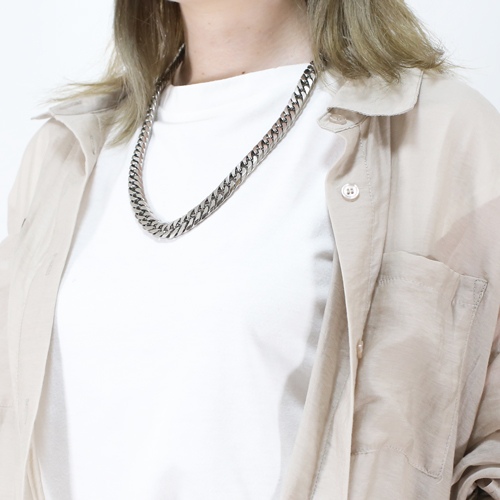 60cmという、長めのサイズで、体格の良い男性の方にもお使いいただけます。なめらかに肌に沿うネックレスは、着け心地も抜群!! 「カラダにやさしい!!」これだけのボリュームがあるのに、見た目ほどに重くなく軽いのがうれしいです。