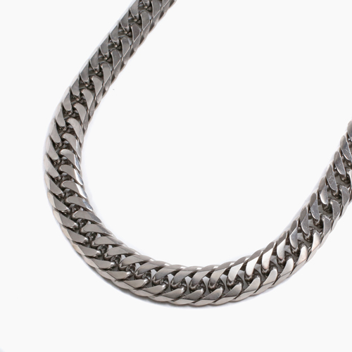 高純度素材である、純チタン(TITANIUM)チタンはアルミニウムと同程度に軽く丈夫でさびにくく金属アレルギーをほとんど起こすことがなく紫外線に当たると表面に活性酸素ができて細菌を死滅させてしまう効果があると言われています。上品で飽きのこない6面カットダブル喜平。12mm幅の極太サイズで存在感があり、特に男性の方に楽しんでいただける洗練されたデザインです。60cmという、長めのサイズで、体格の良い男性の方にもお使いいただけます。なめらかに肌に沿うネックレスは、着け心地も抜群!! 「カラダにやさしい!!」これだけのボリュームがあるのに、見た目ほどに重くなく軽いのがうれしいです。