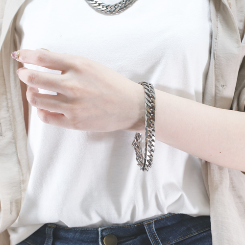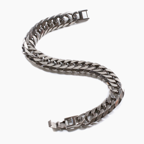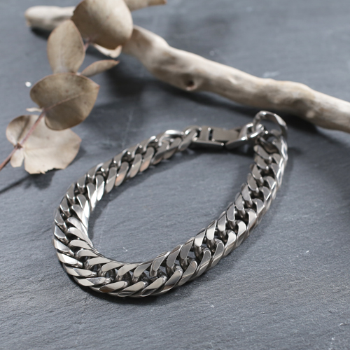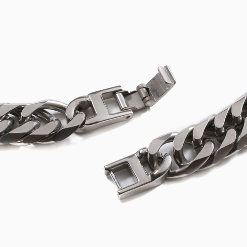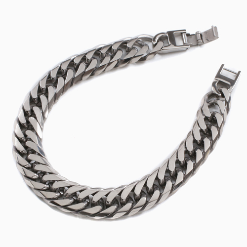 高純度素材である、純チタン(TITANIUM)チタンはアルミニウムと同程度に軽く丈夫でさびにくく金属アレルギーをほとんど起こすことがなく紫外線に当たると表面に活性酸素ができて細菌を死滅させてしまう効果があると言われています。上品で飽きのこない6面カットダブル喜平。12mm幅の極太サイズで存在感があり、特に男性の方に楽しんでいただける洗練されたデザインです。22cmという、長めのサイズで、体格の良い男性の方にもお使いいただけます。なめらかに手首に沿うブレスレットは、着け心地も抜群!! 「カラダにやさしい!!」これだけのボリュームがあるのに、見た目ほどに重くなく軽いのがうれしいです。
