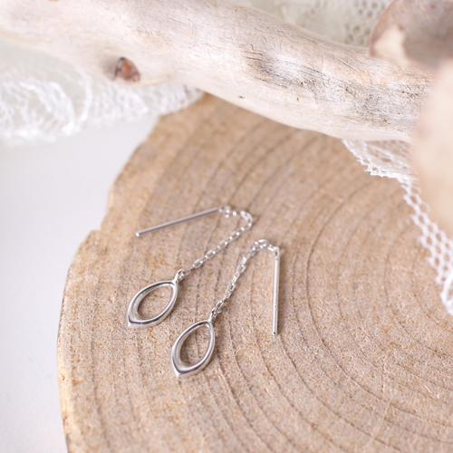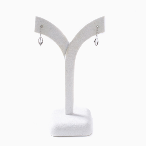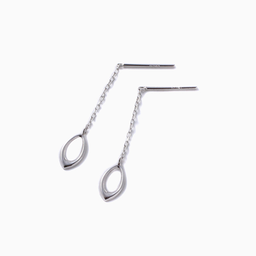シャープなイメージのホワイトゴールドのかわいく揺れるアメリカンピアス!!素肌まで綺麗に魅せてくれる大人ジュエリー。