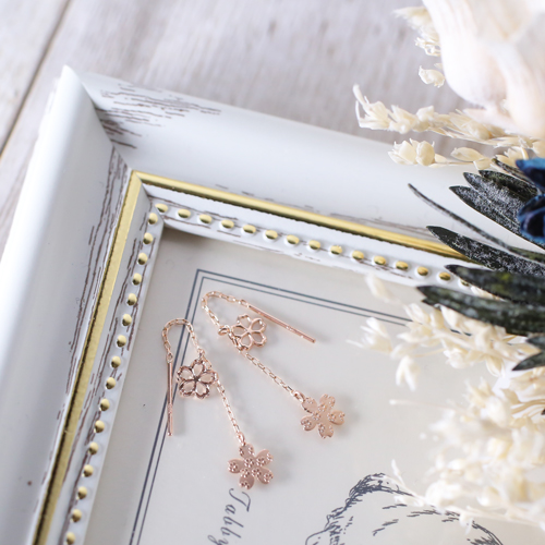 肌馴染みの良いピンクゴールドのかわいく揺れるアメリカンピアス!!素肌まで綺麗に魅せてくれる大人ジュエリー。