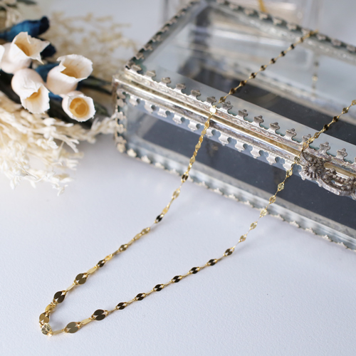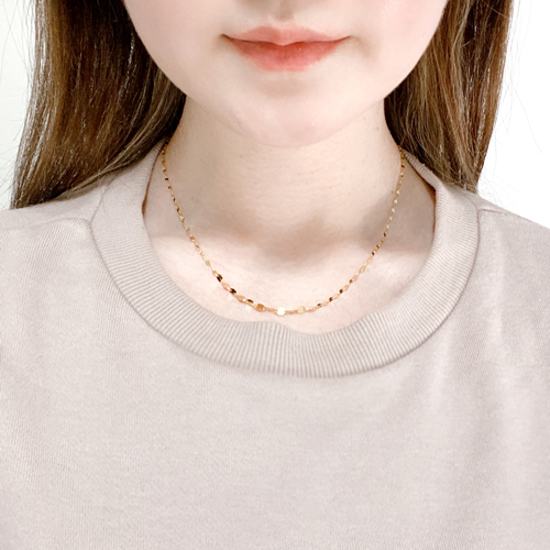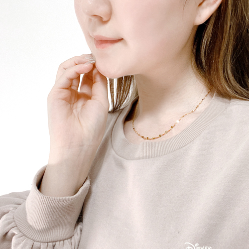 こちらのお店のネックレスを見ていた時、丁度セールになっていて細い18金ネックレスが欲しいかったのと、スライドチェーンで便利そうなので購入しました。小さいトップにピッタリでとても綺麗で長さ調節も出来てとても満足です。