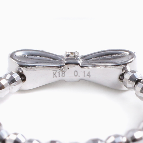 日本製 18金WG リボン フリーサイズ ミラーボール リング ダイヤモンド 合計約0.14カラット 4648-JK21