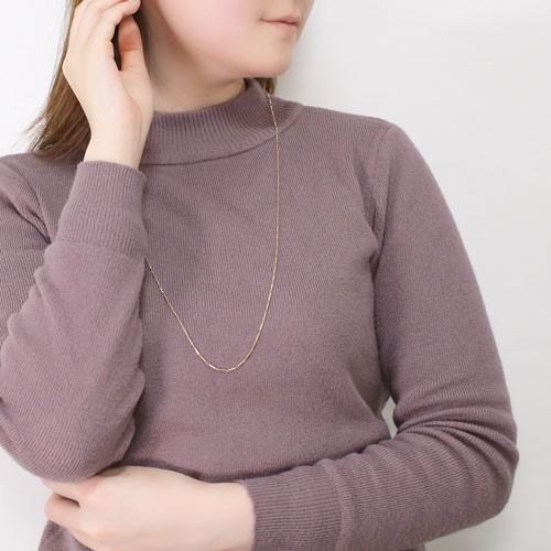 18金を贅沢に使用した、上品なネックレス。80cmとロングサイズになっており、忙しい朝やお出かけ前でも留具をは外さず頭からかぶって装着が可能!ニットやセーターなど、服の上から着けられるのでオシャレの幅がもっと広がります!!年齢も関係なくお使いいただける上品なデザインなので自分へのご褒美や大切な人へのプレゼントにもおすすめです。