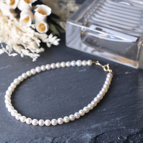 18金あこやパールブレスレットが登場しました☆ 4~4.5mmのあこやーパールが上品な大人っぽさを演出!華奢だけれども主張し過ぎない存在感!