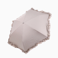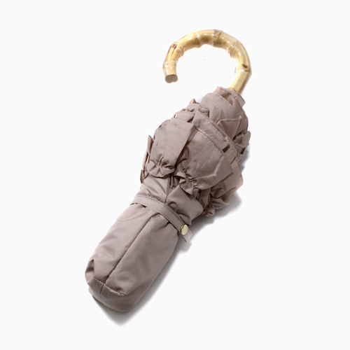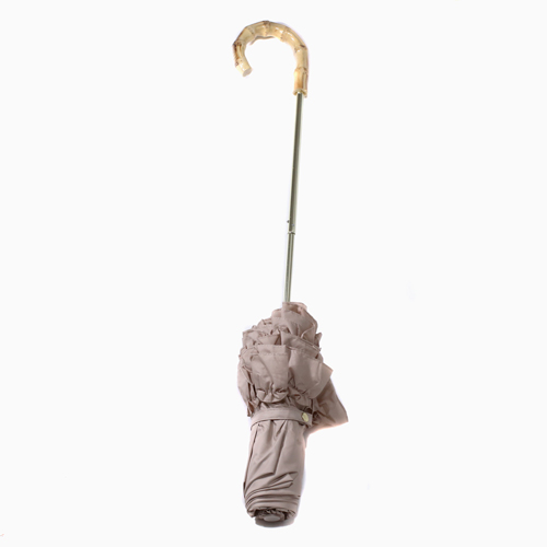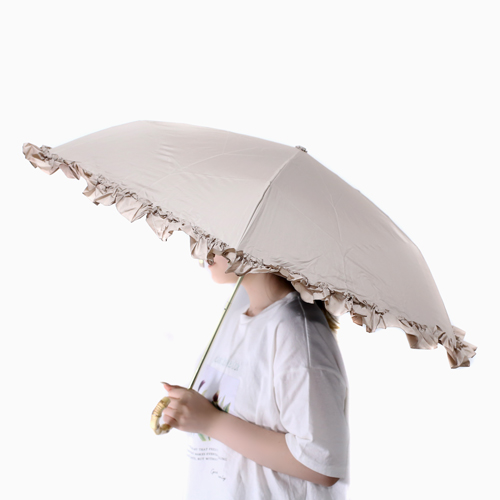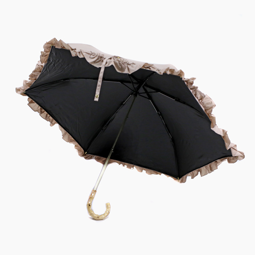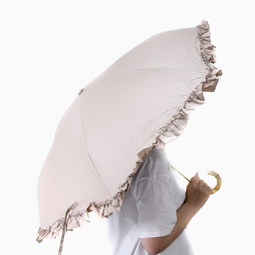 ベージュの可愛いフリルデザインで、大人っぽい上品さもある日傘は、