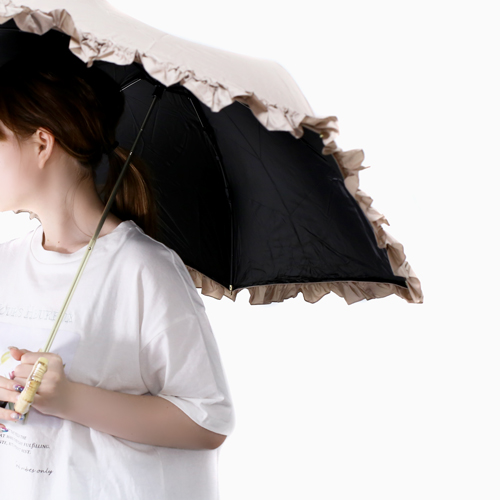 晴れの日も、雨の日も使える晴雨兼用の オシャレなフリルベージュの日傘が登場しました!紫外線はもちろん、ブラックコーティングが 照り返しも吸収することで、赤外線、遮熱効果もありますので『涼しい』『眩しくない』日傘です!ベージュの可愛いフリルデザインで、大人っぽい上品さもある日傘は、紫外線が気になる夏には毎日の必須アイテムになること間違いなし!サイズもコンパクトサイズなので使わない時は鞄の中に入れて持ち運びも◎これから紫外線が気になる季節に大変おすすめ日傘です。