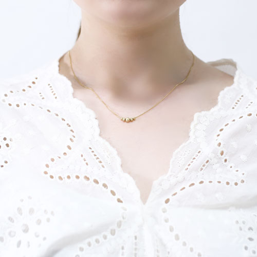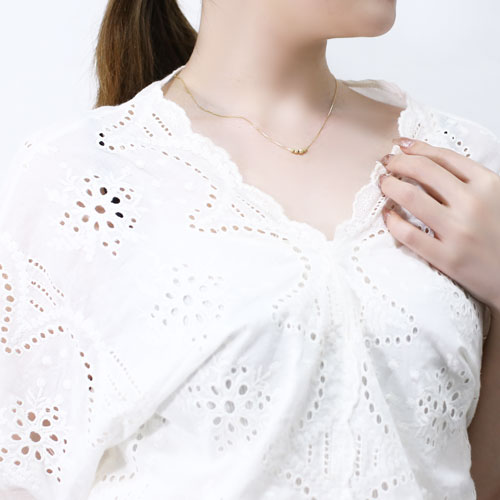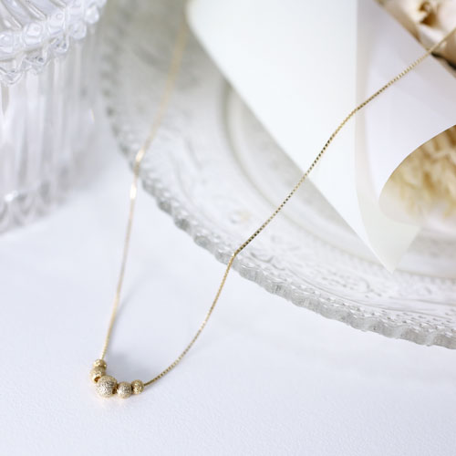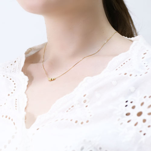 センターに3mm、両脇に2.5mm、2mmと グラデーションにリズム良く配置し、カット面の大きさと角度や光の変化を映して強くきらめき、デコルテを美しく華やかに。肌を明るく見せてくれて、抜群の存在感を放ちます。チェーンは、スライド式の高級ベネチアンを使用。キラキラと輝く8面カットチェーンは、センターとは対照的に控え目な輝きを感じます。どんなスタイルにもさらりと馴染み、重ね着けにもお勧めのペンダントはマルチに大活躍すること間違い無しです♪飽きのこないシンプルなデザインだから、きっと長く大事にお使い頂けます。※チェーンはシリコンスライド式の高級仕様です。45cmまでのお好みの長さに調整できます。ボール部分をつまみチェーンを引っ張ってお好みの長さに調整してください。必ず首につける前に調整してください。