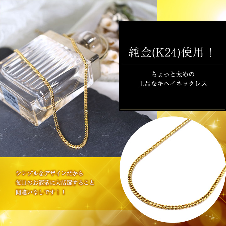 純金(K24)を贅沢に18gも使った、ゴージャスで上品なキヘイネックレス。男性女性関係なくお使いいただけるシンプルなデザインのネックレスはお手持ちのペンダントとの重ね付けにも◎毎日のオシャレに必須アイテムの上品なキヘイネックレスはプレゼントにもおすすめです。