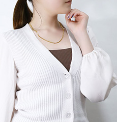 幅広いコーディネートで大活躍シンプルなデザインのキヘイネックレスは、パーティからカジュアルスタイルまで幅広くお使いいただけます。 |