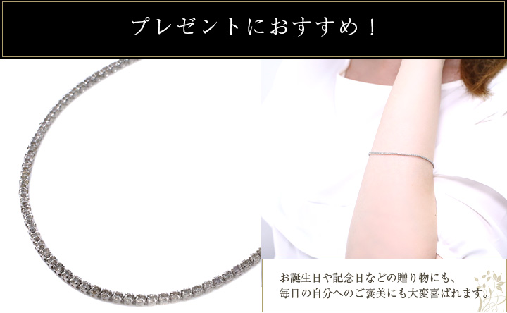 お祝い品として誕生日や特別な日に送る贈り物にもおすすめのダイヤモンドブレスレットです。 |